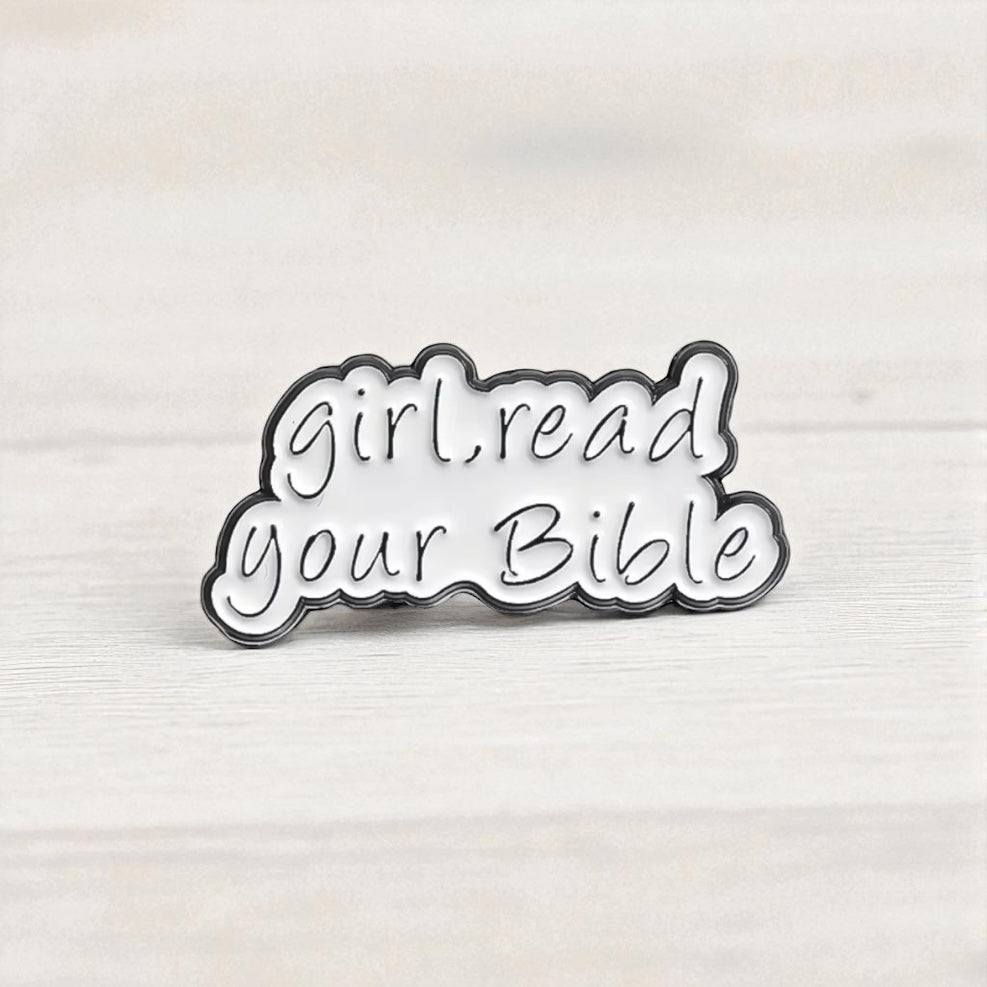 Carry a daily reminder of faith wherever you go with this meaningful enamel-style pin. Featuring the encouraging phrase “Girl, read your Bible”, it’s the perfect accessory to inspire yourself (or a loved one) to stay rooted in God’s Word.