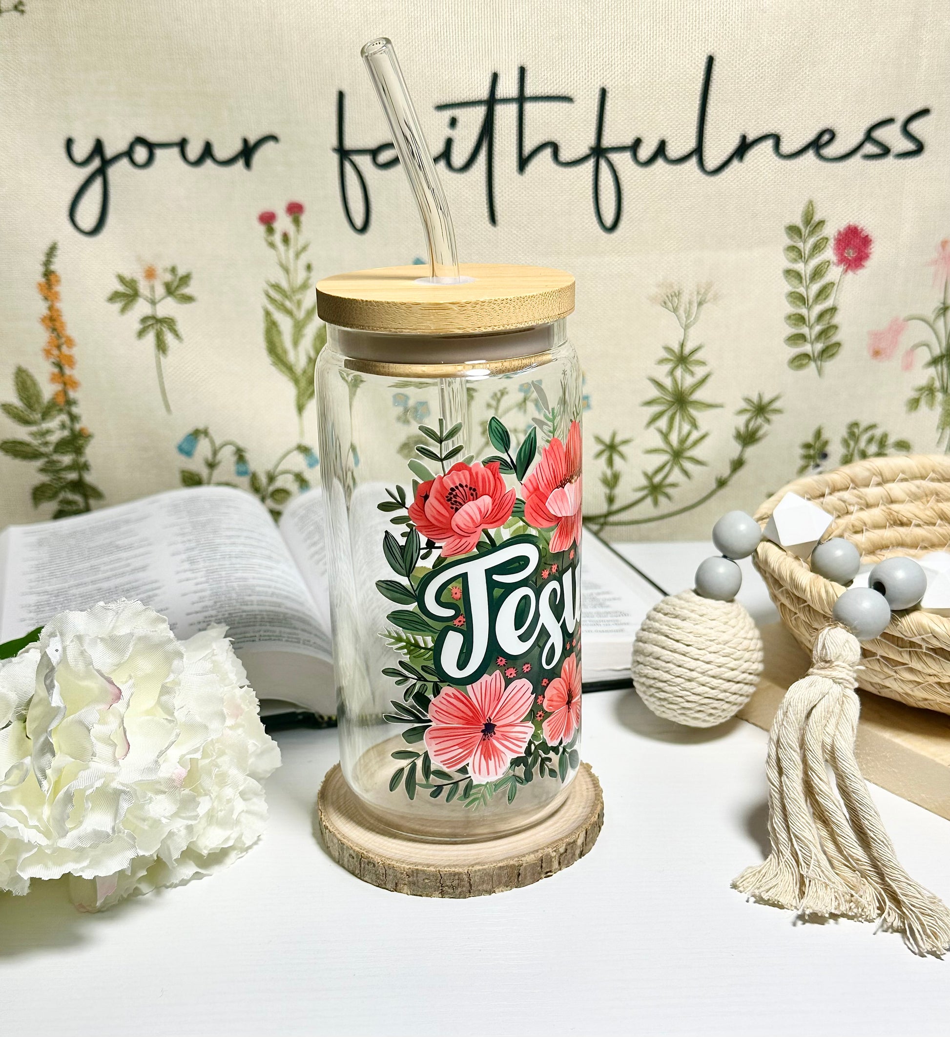Jesus Floral Glass Cup – 16 oz 🌸